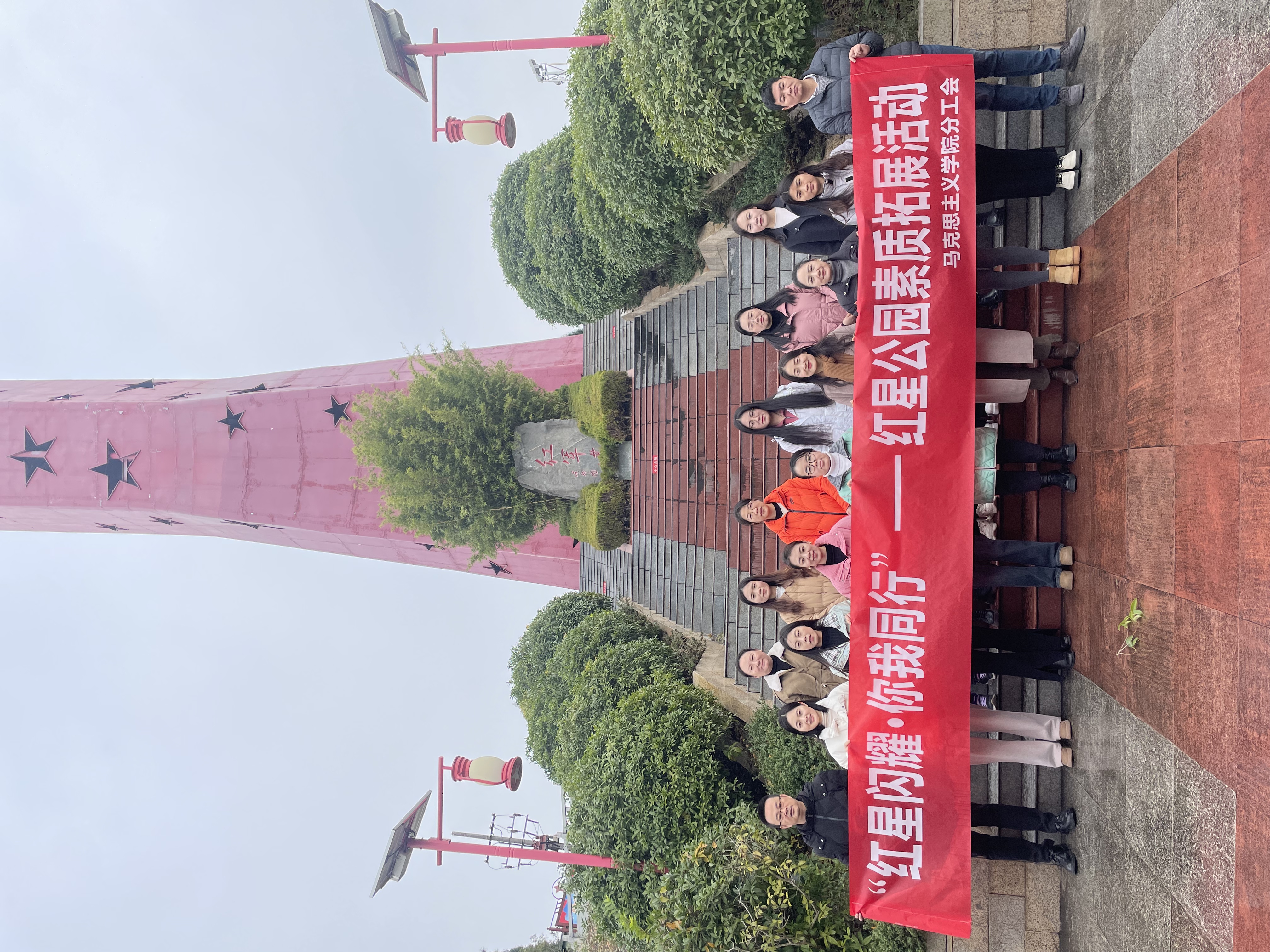 为进一步提升学院教职工的凝聚力与向心力,丰富教职工的文体生活,加强工会成员的沟通交流,让大家于繁忙工作中亲近自然、舒缓身心。11月25日,马院分工会精心组织全体教职工开展了“红星闪耀·你我同行 —— 红星公园健步走素质拓展活动。